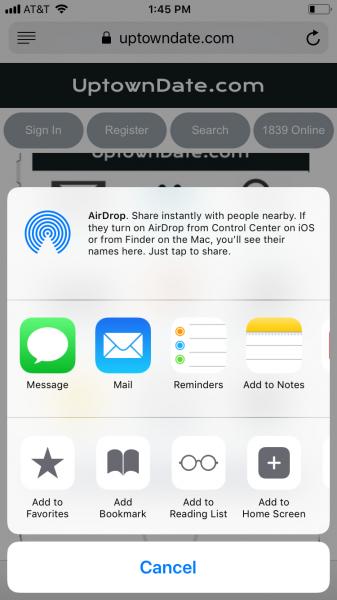 ☛ 2. Second screen shot: Click on the Add to Home Screen plus button.